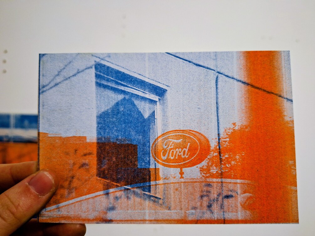 Set of 6 2-colour risograph postcards of double-exposure shots from the A13, London-Essex. These images come from my expanded cinema work ROAD MOVIE, using performance photography and video to formulate a queer phenomenology of the roadside.